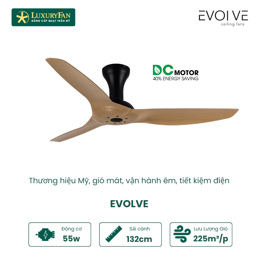 1. Quạt trần Mỹ Evolve thiết kế hiện đại