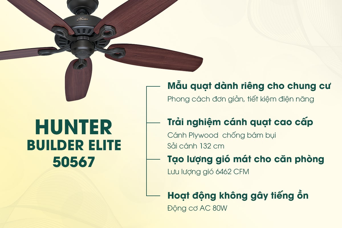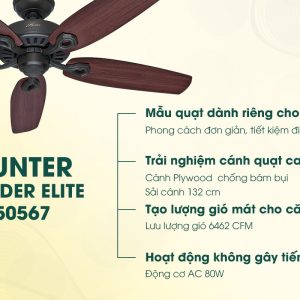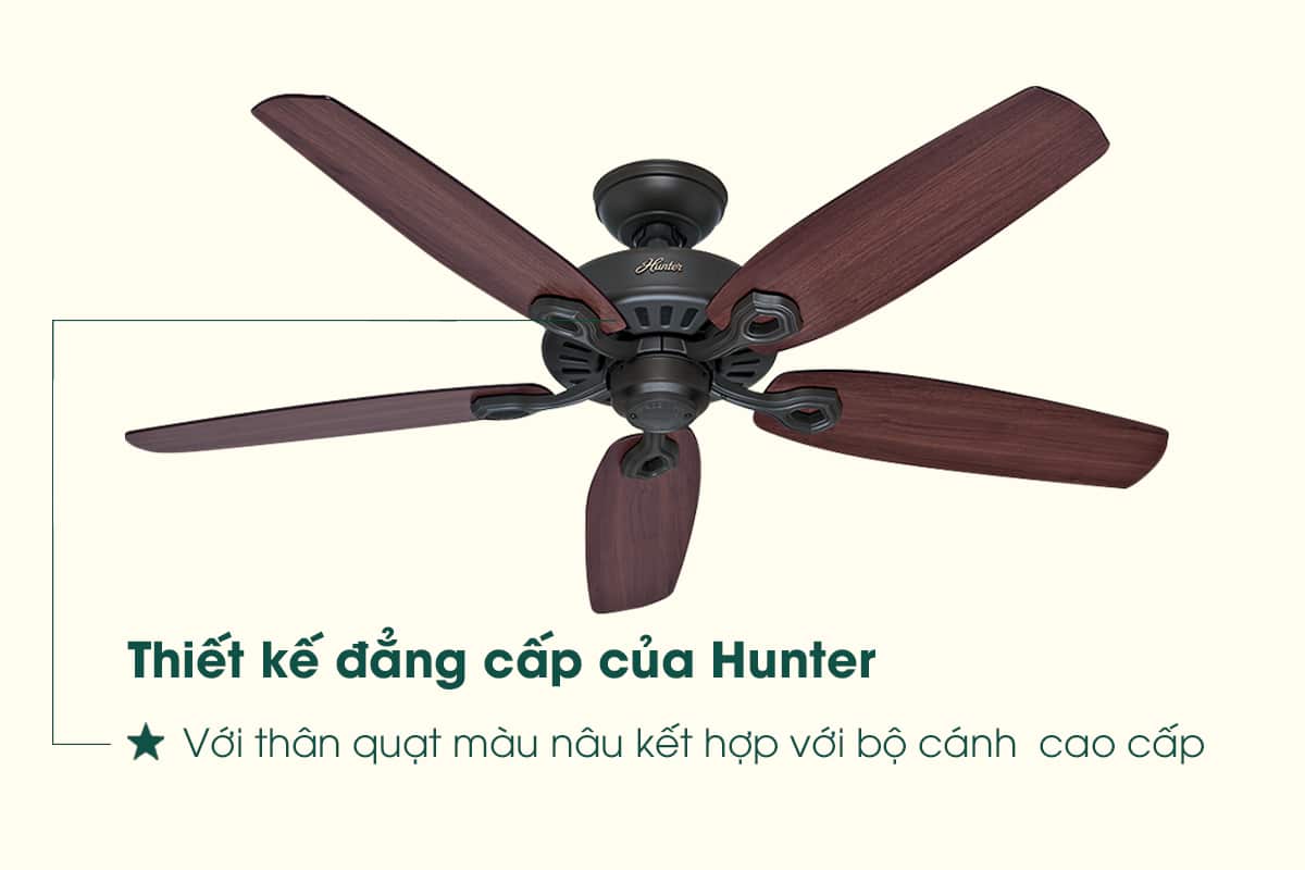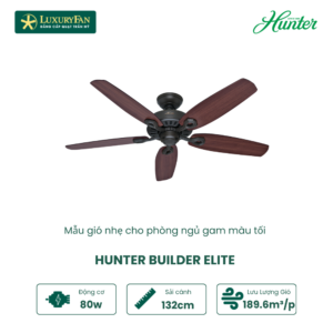 Nối gót những sản phẩm quạt gắn trần đẹp đàn anh của thương hiệu Hunter, Hunter Builder Elite mang phong cách thiết kế cổ điển, gợi cho người nhìn cảm nhận về sự hoài cổ, cũng không kém phần sang trọng và tinh tế, thích hợp với mọi không gian nội thất.