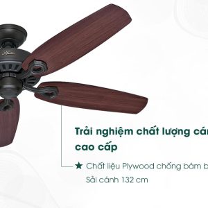 5 cánh quạt Hunter Builder Elite được làm bằng chất liệu gỗ Plywood với sải cánh dài 132cm, độ nghiêng cánh tiêu chuẩn làm 14 độ kết hợp với công suất hoạt động của động cơ là 80W, tạo ra những luồng gió như gió tự nhiên, thoáng đãng với lưu lượng gió lên đến 189,6 m3/phút. Bạn sẽ cảm nhận được làn gió tươi mát nhanh chóng ngay từ lúc quạt vừa vận hành.