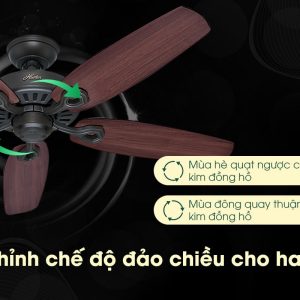 Hunter Builder Elite cũng giúp cho người dùng có thể tận hưởng bầu không khí thoáng đãng trong nhà vào bất kỳ mùa nào trong năm. Được trang bị chức năng đảo chiều gió hiện đại, Hunter Builder Elite vừa làm mát được không gian vào những ngày hè nóng bức, vừa làm thoáng không gian vào những ngày nồm ẩm, mùa lạnh.