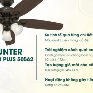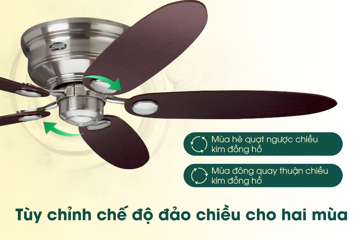 Một tính năng nổi bật khác của Hunter Low Profile chính là chế độ đảo chiều gió thông minh.Chế độ này giúp quạt làm mát đều khắp mọi ngóc ngách trong phòng, tránh tình trạng không khí nóng tập trung tại một khu vực cụ thể. Điều này đặc biệt hữu ích khi kết hợp với hệ thống điều hòa, giúp không khí lưu thông tốt hơn và tiết kiệm điện năng hiệu quả.