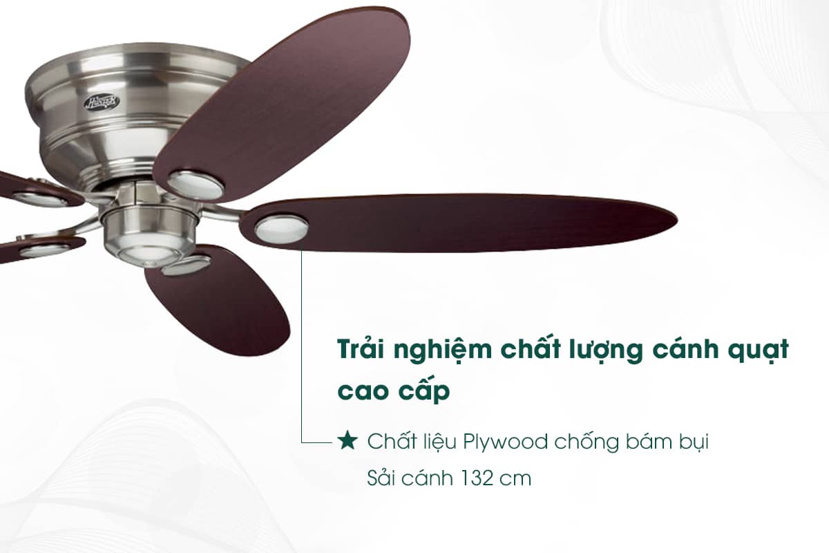 Nhờ độ bền bỉ này, cánh quạt được làm từ gỗ ván ép có thể đứng vững trước những thách thức của thời gian mà không bị cong vênh hay hư hỏng dễ dàng. Điều này đảm bảo quạt trần Hunter Low Profile sẽ hoạt động ổn định và êm ái trong suốt quá trình sử dụng, mang đến trải nghiệm thoải mái tuyệt vời cho người dùng.