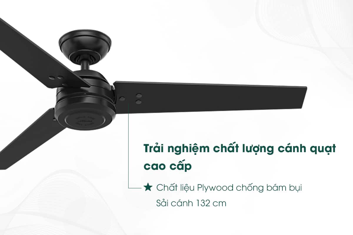 Một trong những điểm nổi bật của Hunter Protos chính là chất liệu gỗ Plywood cao cấp được sử dụng cho ba cánh quạt. Gỗ Plywood không chỉ mang đến vẻ đẹp sang trọng, ấm cúng cho không gian, mà còn đảm bảo sự bền bỉ và tuổi thọ lâu dài cho sản phẩm.
