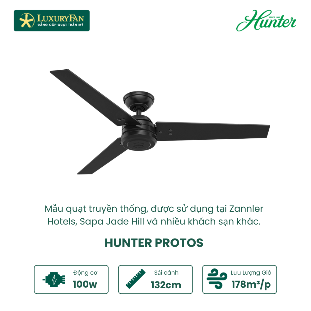 Sự kết hợp hoàn hảo giữa thiết kế tối giản và chất lượng vượt trội, Hunter Protos chính là lựa chọn hoàn hảo để nâng tầm vẻ đẹp và sự sang trọng cho không gian sống của bạn. Hãy đến ngay với hệ thống đại lý của LuxuryFan để trải nghiệm tận tay sự hoàn hảo của Hunter Protos – mẫu quạt trần hiện đại, đẳng cấp, mang đến không gian sống tiện nghi và thư thái tuyệt vời. Đừng bỏ lỡ cơ hội sở hữu một tác phẩm nghệ thuật tinh tế cho ngôi nhà của mình!
