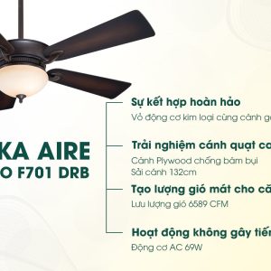Kết hợp cùng sải cánh 132cm, mẫu quạt trần này có thể tạo lượng gió đạt tới 187.8 m3/phút, đem lại không gian thoáng đãng cho phòng diện tích đến 20m2.