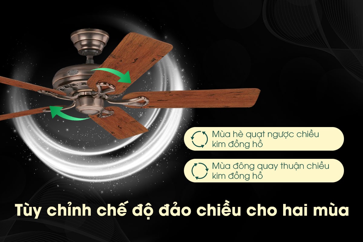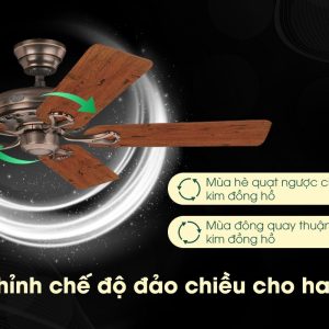 Sản phẩm quạt trần này cũng giống như các dòng quạt trần trang trí khác đó là trang bị chức năng đảo chiều cánh quạt, bạn có thể sử dụng quạt trần bất cứ khi nào.