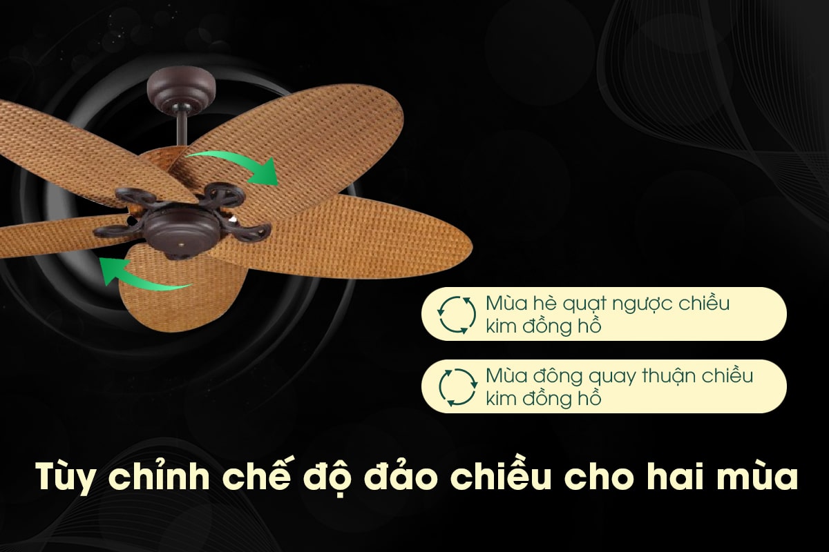 Ngoài chất lượng vượt trội về vật liệu và động cơ, Lucci Fijian còn được trang bị nhiều tính năng thông minh, nâng cao đẳng cấp trải nghiệm cho người dùng. Chế độ đảo chiều gió là một tính năng ưu việt của mẫu quạt này. Nó cho phép thay đổi hướng chuyển động của cánh quạt để phân phối khí lưu thông đều khắp không gian. Vào mùa hè, chế độ đảo chiều gió đẩy khí lạnh xuống dưới, loại bỏ tình trạng khí nóng đọng lại trên cao. Ngược lại, vào mùa đông, nó sẽ đẩy khí ấm xuống và kéo khí lạnh lên, giúp tiết kiệm chi phí sưởi ấm đáng kể.