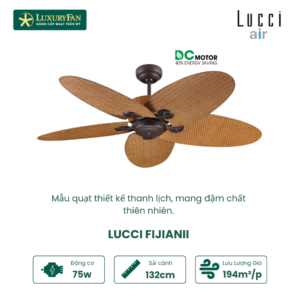 Nếu bạn đang tìm kiếm một mẫu quạt trần cao cấp để nâng tầm không gian sống, Lucci Fijian xứng đáng là mẫu quạt trần trang trí ấn tượng nhất. Mang đậm chất thiên nhiên trong từng đường nét thiết kế, mẫu quạt này tỏa ra khí chất nhẹ nhàng, thanh thoát nhưng vẫn đủ sang trọng, tinh tế để làm nổi bật bất cứ không gian nào.