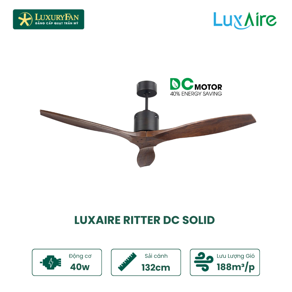 Từ chất liệu sử dụng, thiết kế kiểu dáng, màu sắc của quạt, công năng, đến thiết bị điều khiển đều mang những ưu điểm nổi bật khiến quạt trần Luxaire Ritter DC Solid Wood BN trở thành cái tên được nhiều khách hàng ưu ái lựa chọn.