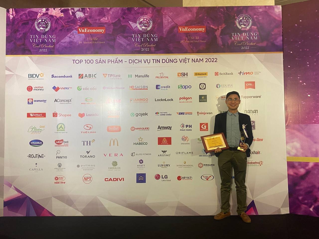 Chiều ngày 7/12/2022, tại Khách sạn Marriott (Hà Nội) đã diễn ra Lễ công bố và vinh danh “Top 100 sản phẩm – dịch vụ tin dùng Việt Nam 2022”. Đây là hoạt động nhằm ghi nhận và vinh danh các thương hiệu sản phẩm, dịch vụ uy tín, chất lượng, đảm bảo các tiêu chuẩn quốc gia và quốc tế, vì sức khỏe con người và đáp ứng yêu cầu của khoa học kỹ thuật hiện đại được tổ chức bởi VnEconomy, Tạp chí Kinh tế Việt Nam và Vietnam Economic Times.