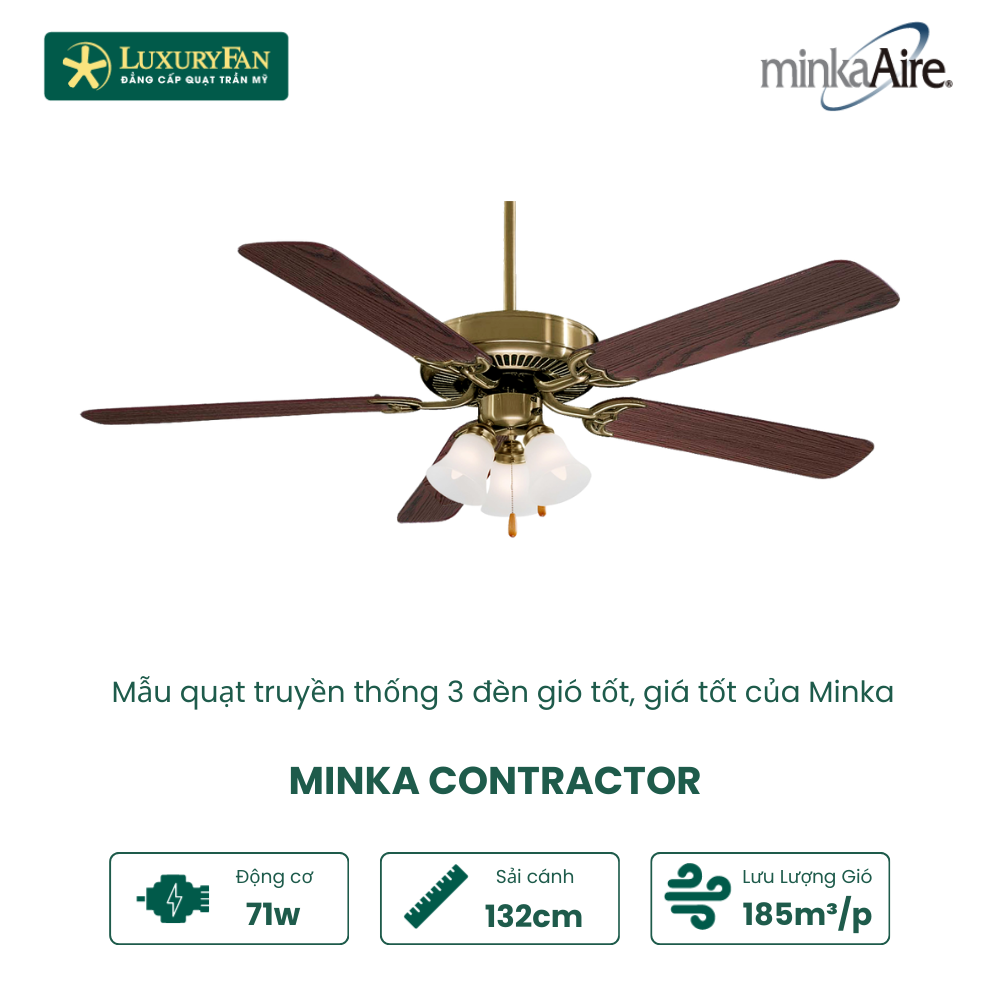‘- Mẫu quạt truyền thống 3 đèn gió tốt, giá tốt của Minka.