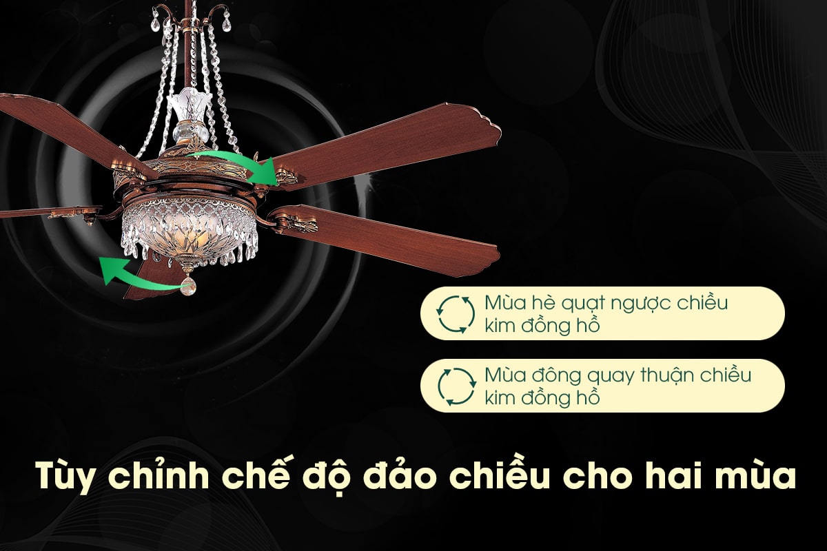 Nhờ tính năng đảo chiều hiện đại, sản phẩm có thể dùng được quanh năm. Mùa hè Minka Cristafano quay ngược chiều với kim đồng hồ, quạt hút khí nóng lên và đẩy gió mát xuống. Mùa đông sản phẩm sẽ quay thuận chiều kim đồng hồ, quạt hút khí lạnh lên phía trên để đẩy khí ấm xuống.