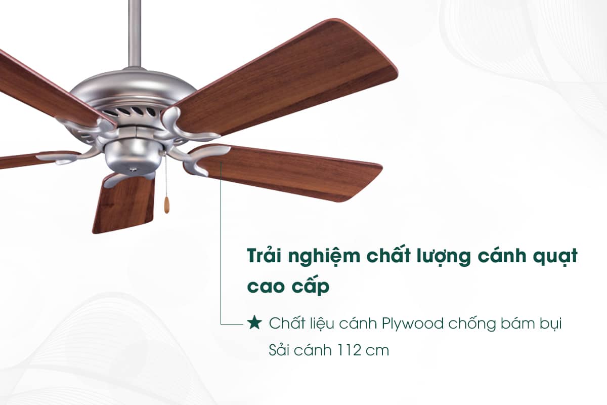 Bên cạnh sự bền bỉ, gỗ plywood còn mang đến vẻ đẹp tự nhiên và sang trọng cho sản phẩm. Với những đường vân gỗ đẹp mắt, cánh quạt tạo nên điểm nhấn ấn tượng, tôn lên vẻ đẹp cổ điển và tinh tế cho không gian sống của bạn.